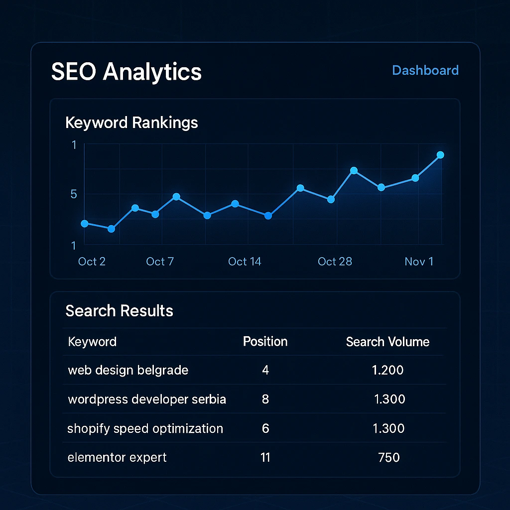 Visibility drives results. We deliver full SEO optimization strategies that include technical audits, keyword research, and content planning. From Core Web Vitals to structured data, we ensure your website performs better in search and reaches the right audience.